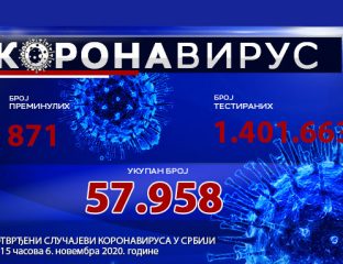 У последња 24 сата од последица корона вируса у Србији је преминуло 11 особа, док је потврђено још 2.181 случајева, објављено је данас на сајту Министарства здравља. [mkd_dropcaps type="square" color="" background_color=""]Т[/mkd_dropcaps]естирано је 12.480 особа, укупно 1.388.716