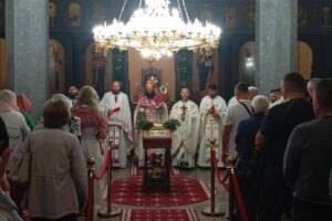 У храму Светог цара Уроша у Урошевцу обележена градска слава [mkd_dropcaps type="square" color="" background_color=""]С[/mkd_dropcaps]ветом литургијом и резањем славског колача у храму Светог цара Уроша у Урошевцу обележена је градска слава, празник Усековање главе Светог Јована Крститеља.