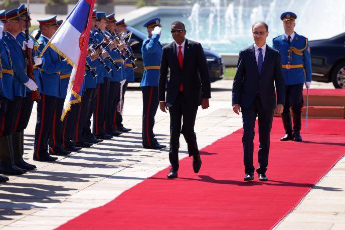 Премијер Мацут је раније, уз највише државне почасти, испред Палате Србије дочекао председника Владе Савезне Републике Сомалије Хамзу Абдија Бареа.