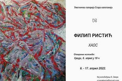Академски сликар Филип Ристић, докторанд на Факултету савремених уметности представља се публици још једном изложбом својих слика под насловом Хаос (уље на платну, великих формата) која је организована у Галерији „Стара капетанија“ у Земуну и која ће трајати до 17. априла. -Пре било каквог почетка, пре речи, пре свега беше хаос. Филип је кроз трагање хаоса у онтолошкој потрази за правом сликом. Уметник се у свом циклусу Хаос враћа својим почецима, својој архислици. Кроз традиционалну технику и стихијском предавању, он трага за собом. Слика је увек промишљање, процес и борба. У овом времену, човеку не преостаје ништа него да се врати својој духовности, да се окрене себи. Као бића која имају неке своје природне циклусе, ми смо увек на неким новим почецима, сваки нови животни период кроз који пролазимо нас плаши и збуњује. У тим околностима у нама експлодирају читави универзуми, непрестано настају нове консталације. Распадамо се и поново састваљамо. На Ристићевим платнима пред нама експлодирају, горе ватре и прште боје на све стране . Од густине енергије нема ваздуха за дисање. Све нам то говори о тескоби и притиску коју је Филип источио из времена у коем живимо и претворио у уметност. Овако о сликама Филипа Ристића каже др уметности Милена Вукајловић.