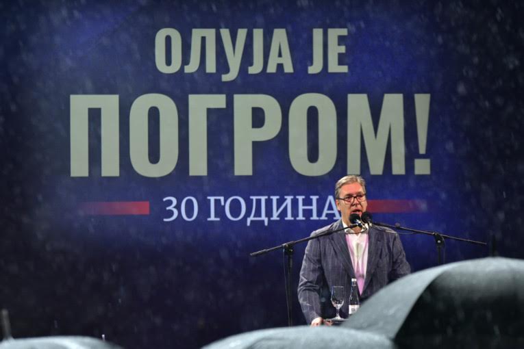 „Вечерас ћу да говорим о нечему потпуно другом – неправди. Говорићу о свему ономе што су нама Србима урадили у претходних 30 и више година. Уништили су нам Југославију, рекавши да Срби не могу да живе у једној држави. Онда су рекли да неће да нам дирају Косово и Метохију. Када је избио сукоб у Крајини, ковали су завере и планове да сруше Српску Крајину. Причали су како је величанствено убити 2.500, а протерано 250.000 људи. Натерали су нас да ћутимо и говорили гледајте Србију у будућности“, навео је Вучић.