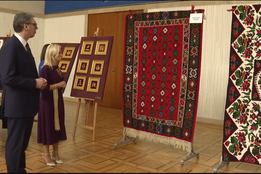 „Пиротско, стапарско и сјеничко-пештерско ћилимарство, косовски и влашки вез, змијански вез, бездански дамас, књажевачке чарапе и текеришки пешкири су прича о идентитету, о истрајности, о љубави према својим коренима и отаџбини“, нагласио је председник.