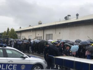 Уз узвике „Вратите нам халу!“ и пиштаљке окупили су у 9 сати и изразили гласно негодовање и свој протест због заузимања објекта. Испред улаза у Спортску халу налазило се десетак полицајаца који не дозвољавају улаз у објекат, а паркирано је било и више полицијских аута.