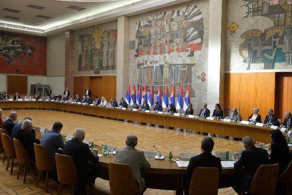 Седници присуствују и председница Скупштине Србије Ана Брнабић, председник Скупштине РС Ненад Стевандић, премијер Србије Ђуро Мацут са члановима кабинета, председник Владе РС Саво Минић са министрима, српски члан Председништва БиХ Жељка Цвијановић, директор Канцеларије за Косово и Метохију Петар Петковић, гувернерка Народне банке Србије Јоргованка Табаковић.
