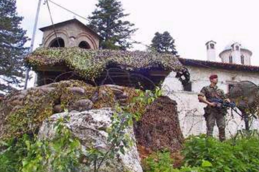 Кфор је 11. јуна 1999. годи не на темељу Резолуције 1244 Савета безбедности УН почео да стиже на Косово са 44.000 вој ника из 39 држава света. У то ку 2007. године тај број је сма њен на 16.000, а данас је свега око 3.700 војника из 28 земаља. Кфор представљају међу народне мировне снаге УН-а под вођством НАТО-а чији је основни задатак чување реда и мира, односно стварање и одржавање сигурности на Ко сову и Метохији. Са доласком Кфора на Ко сово је 1999, 2001. и 2002. го дине стигло и 10.000 УН поли цајаца из 53 земље света као и 10.000 административних и других УН радника распо ређених у свих тадашњих 30 општина Косова и Метохије, што је било око 65.000 при стиглих странаца из више од 100 земаља света. Зона одго ворности Кфора подељена је на пет региона: Север под управом Француза, Исток под командом САД, Југ под запо ведништвом Немачке, Запад под управом Италије и Цен тар којим ко мандује Велика Британија. Косово је буквално поста ло НАТО држава у коме и да нас 200 припадника косовске полиције даноноћно чува 24 српских цркава и манастира и споменик на Газиместану док Кфор даноноћно обезбе ђује Високе Дечане. Страх, не мање слободе кретања, напади и пљачке, економска безпер спективност укочили су по вратак Срба на КиМ. Од близу 250.000 протераних вратило се само 1,9 одсто или тек око 3.800 расељених Срба у 50-так места, највише у Метохији, у општинама Клина и Исток.
