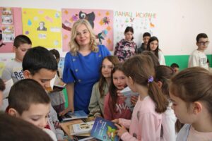 Она је истакла у обраћању ученицима да се приликом читања књига развија њихова машта и функционише на високом нивоу јер се, како је навела, дечији ум труди да створи слику о свету из књиге.