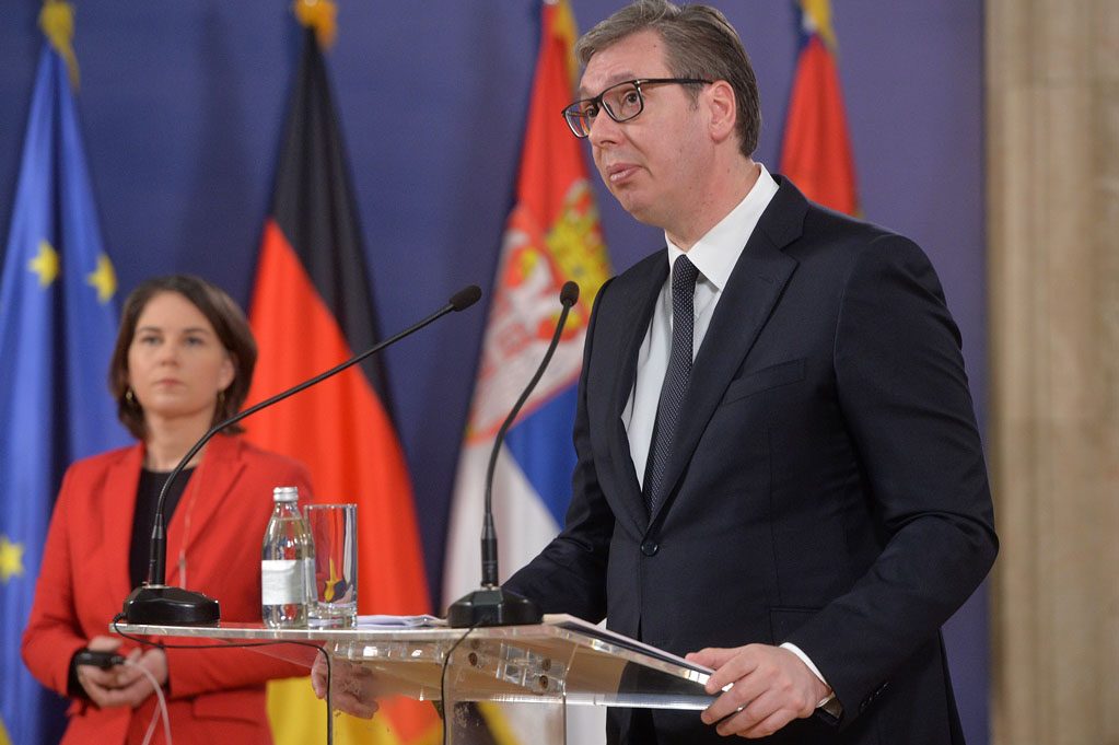 Председник Србије Александар Вучић изјавио је да је са немачком министарком спољних послова Аналеном Бербок разговарао о свим кључним питањима, међу којима питање Косова и Метохије, те да су закључили да проблеме Београда и Приштине треба решавати дијалогом, због чега се, поручио је, Србија увек одазива позиву на дијалог у Бриселу.